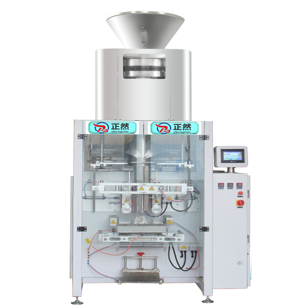 立式全自动量杯包装机组是由一台720立式制袋充填包装机和一台自动量杯计量机组成,该机器集自动上料、自动称量、自动制袋、